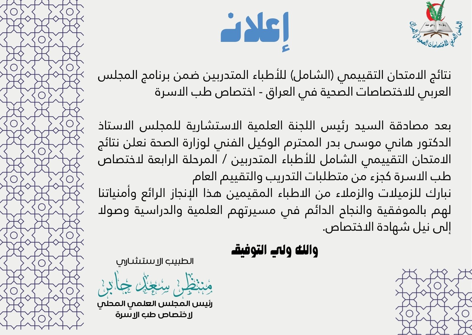 الرئيسيةالدراسات العلياالدراسات العلياامسح للدفع امسح للدفعجمعية اطباء الاسرة العراقيةتقديرا لجهود اطبائنا الاكارم في الدراسات العليا لاختصاص طب الاسرة يسعدنا اطلاق عرض حصري ولفترة محدودة لاصدار هوية جمعية اطباء الاسرة بسعر مدعوم يبلغ 25 خمسة وعشرون الف دينار الاسمالعمررفع كتاب تايد استمرار خدمة تاريخ حديثChoose FileNo file chosenDelete uploaded fileرفع صورة شخصيةChoose FileNo file chosenDelete uploaded fileرفع صورة هوية نقابة الاطباءChoose FileNo file chosenDelete uploaded fileEmail Addressرفع ايصال الدفعChoose FileNo file chosenDelete uploaded fileأضغط هنا الامتحان التمهيدي للبورد العربي دفعة ٢٠٢٢ الاجتماع السنوي لاعضاء المجلس العربي العلمي المحلي لاختصاص طب الاسرة نتائج الامتحان السريري والاوسكي والنظري لاختصاص طب الاسرة - دورة ٢٠٢٢